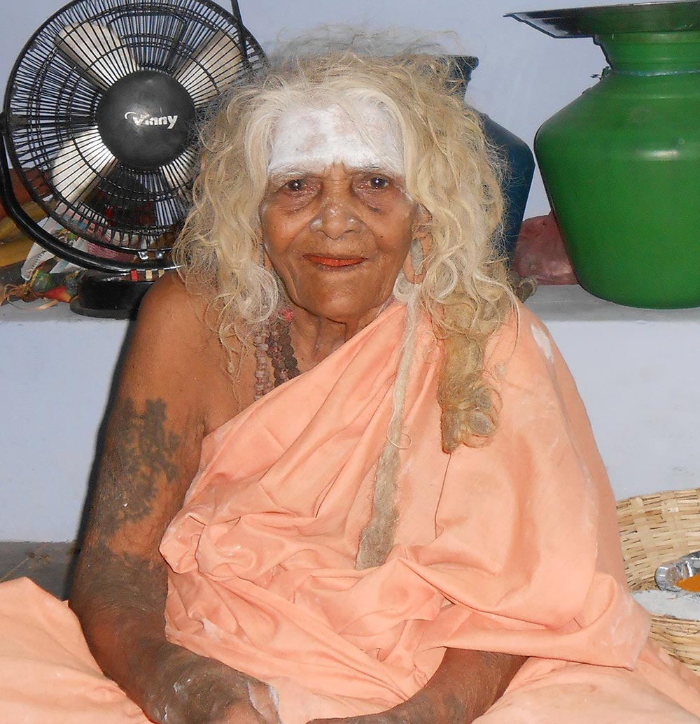 Not too long ago we were introduced to Rajapalayam Amma located in Rajapalayam, which is a town in Virudhunagar district in the Indian state of Tamil Nadu. It is located 85 km southwest of Madurai in the state of Tamil Nadu. Among other you will find the Ayyanar Falls and of course Rajapalayam Amma, a 110 years old yogini of increadible power. She is located in the Sri Thai Kamatchi Amman Temple (This temple is inside of the pannaiyar cotton godown) It look like a jungle, near FCI godown beside Pethavanallur Shiva Tample. Srivilliputhur Road.